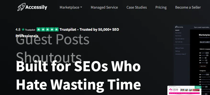 Accessily is basically a giant marketplace where you can buy those links. But it's not just links - you can get guest posts, press releases, social media shoutouts, and even hire writers. Think of it like Fiverr, but specifically for SEO and marketing stuff.